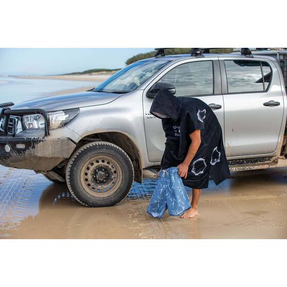 - Hooded towel to take the drying power with you – protects you from wind gusts and dries you on the go!